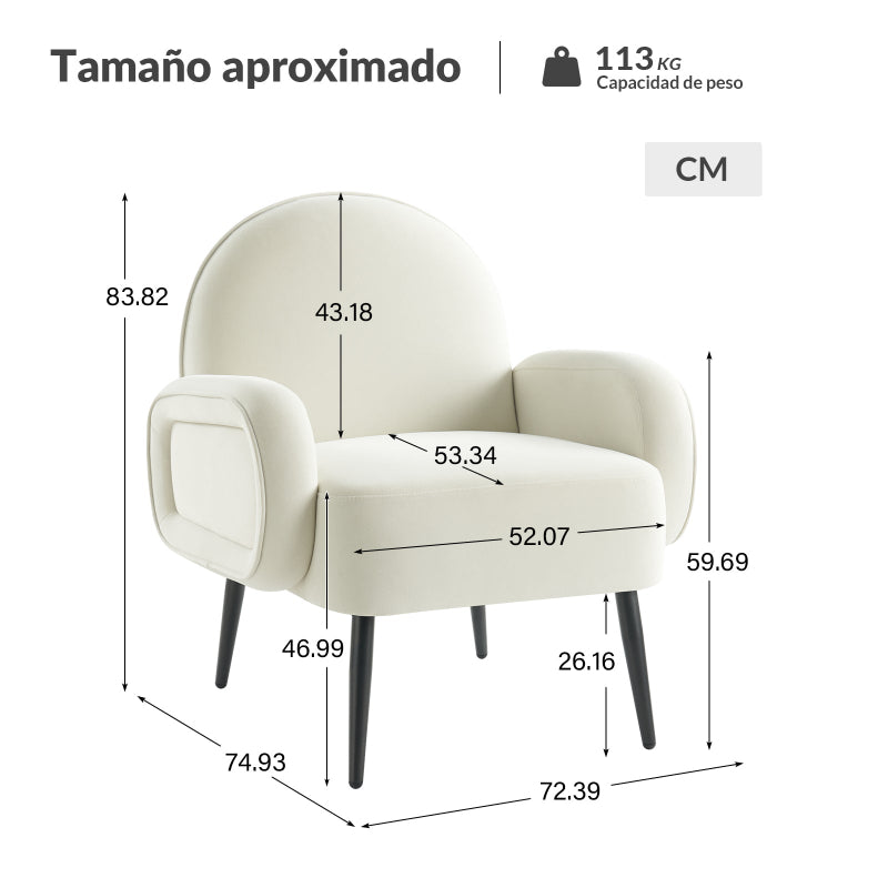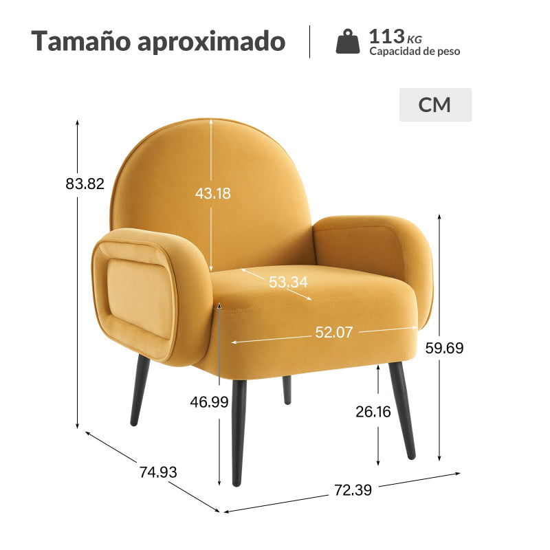Experimenta un confort inigualable con este versátil sillón, perfecto para tu sala de estar, dormitorio, cuarto de bebé o cualquier rincón acogedor como pasillos o balcones. Con un diseño moderno y elegante, se adapta sin esfuerzo a diversos estilos de interiores. Tapizado en lujosa tela de terciopelo, cuenta con un acolchado de esponja súper suave 20D que garantiza comodidad y apoyo excepcionales. Las patas metálicas negras ajustables añaden un toque contemporáneo y proporcionan estabilidad. Fácil y rápido de montar, este sillón es ideal para relajarse o como una elegante pieza decorativa, prometiendo tanto relajación como elegancia.