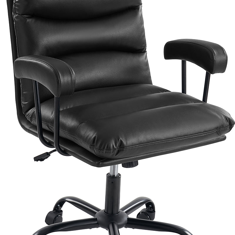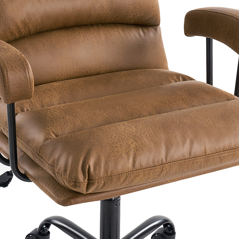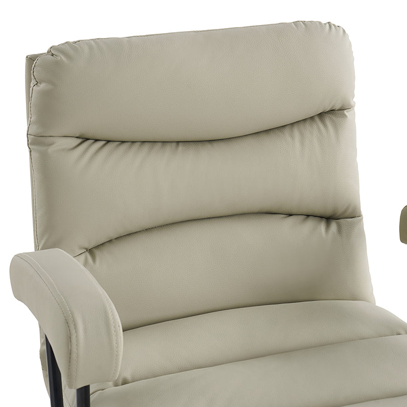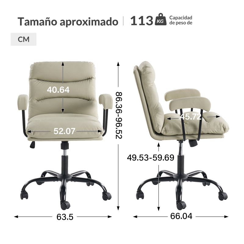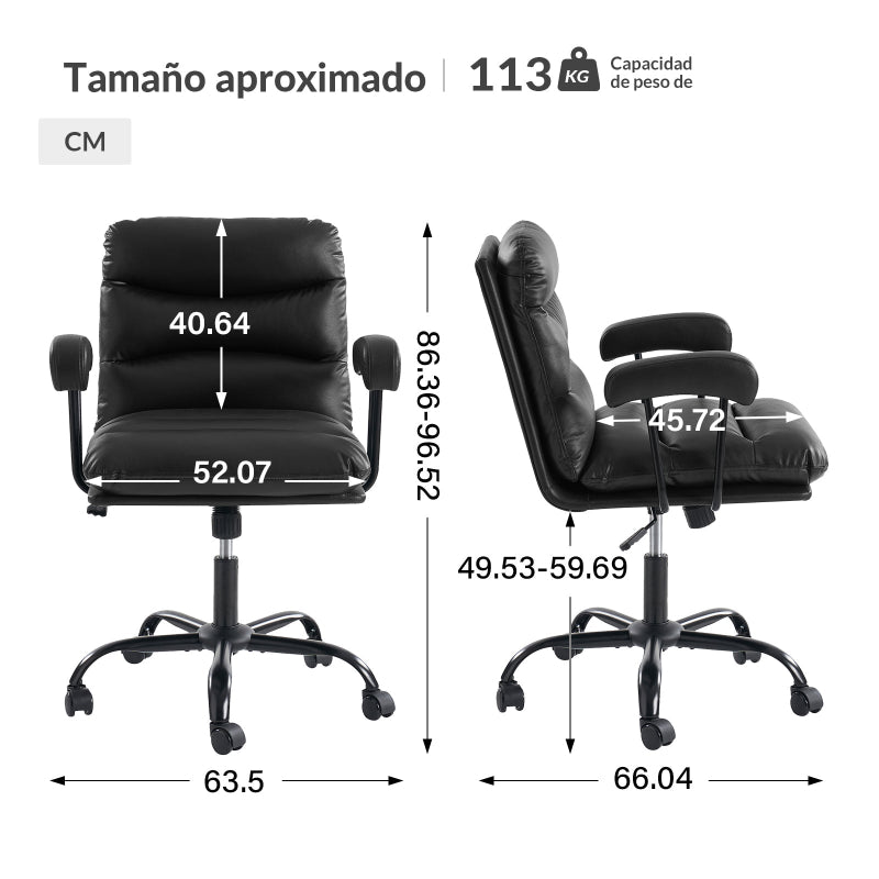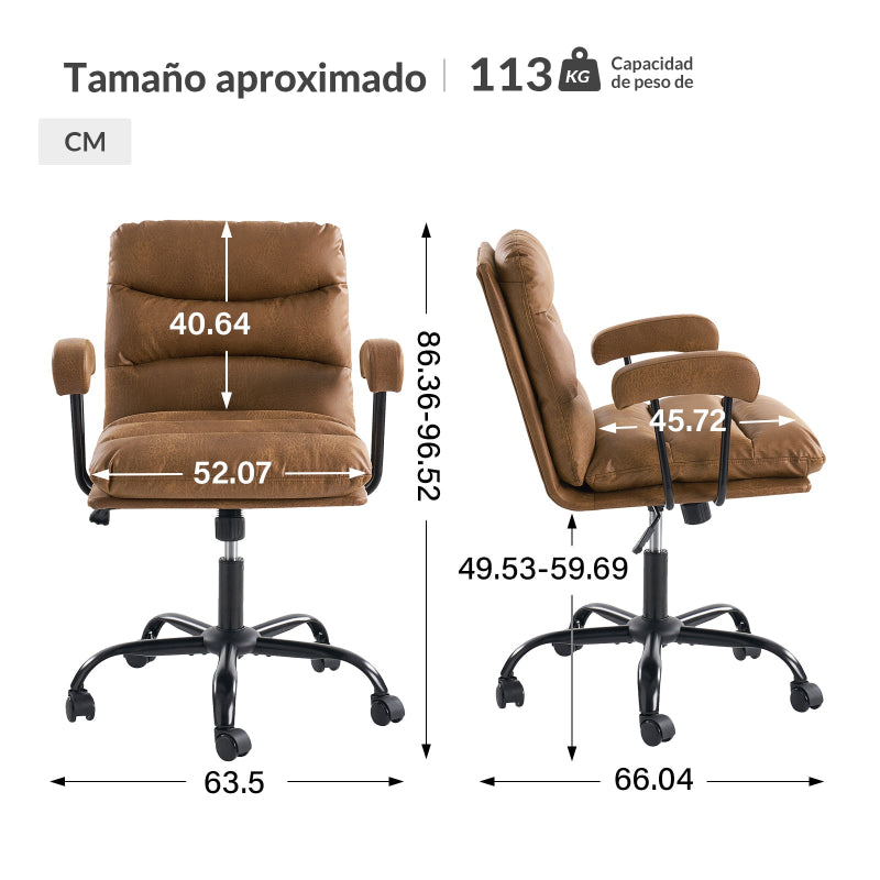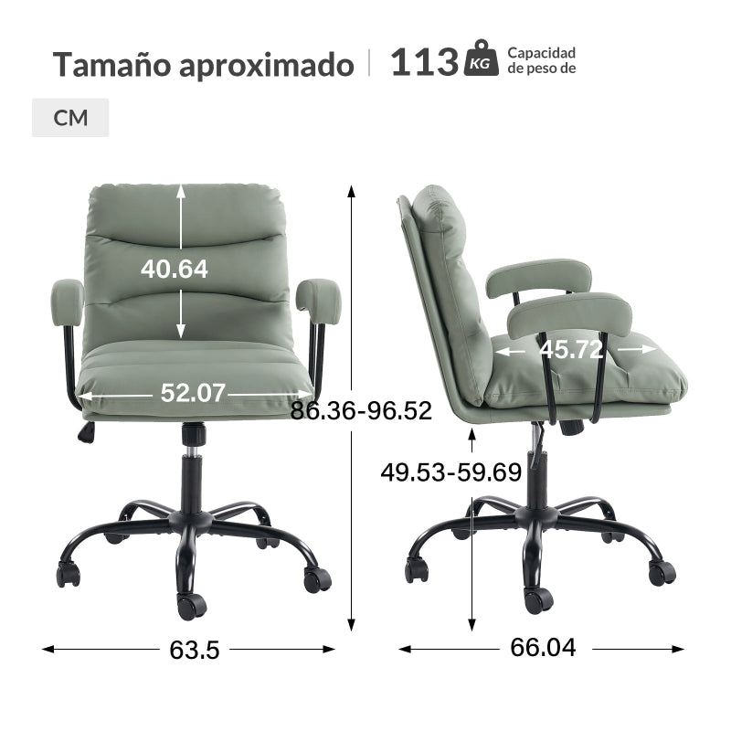 La moderna silla de oficina ergonómica es el epítome del confort y la sofisticación para tu oficina en casa o espacio de trabajo. Tapizada en elegante cuero sintético, combina a la perfección estilo y funcionalidad. Diseñada para brindar un soporte óptimo, cuenta con un resorte de gas de acero inoxidable certificado por SGS, que garantiza durabilidad y estabilidad. Sus patas de metal proporcionan una base resistente, mientras que las ruedas facilitan la movilidad sin esfuerzo. Con un asiento giratorio y ajuste de altura, se adapta fácilmente a tus preferencias de comodidad. Eleva tu experiencia laboral con esta maravilla ergonómica, diseñada meticulosamente para mejorar tu productividad y bienestar.