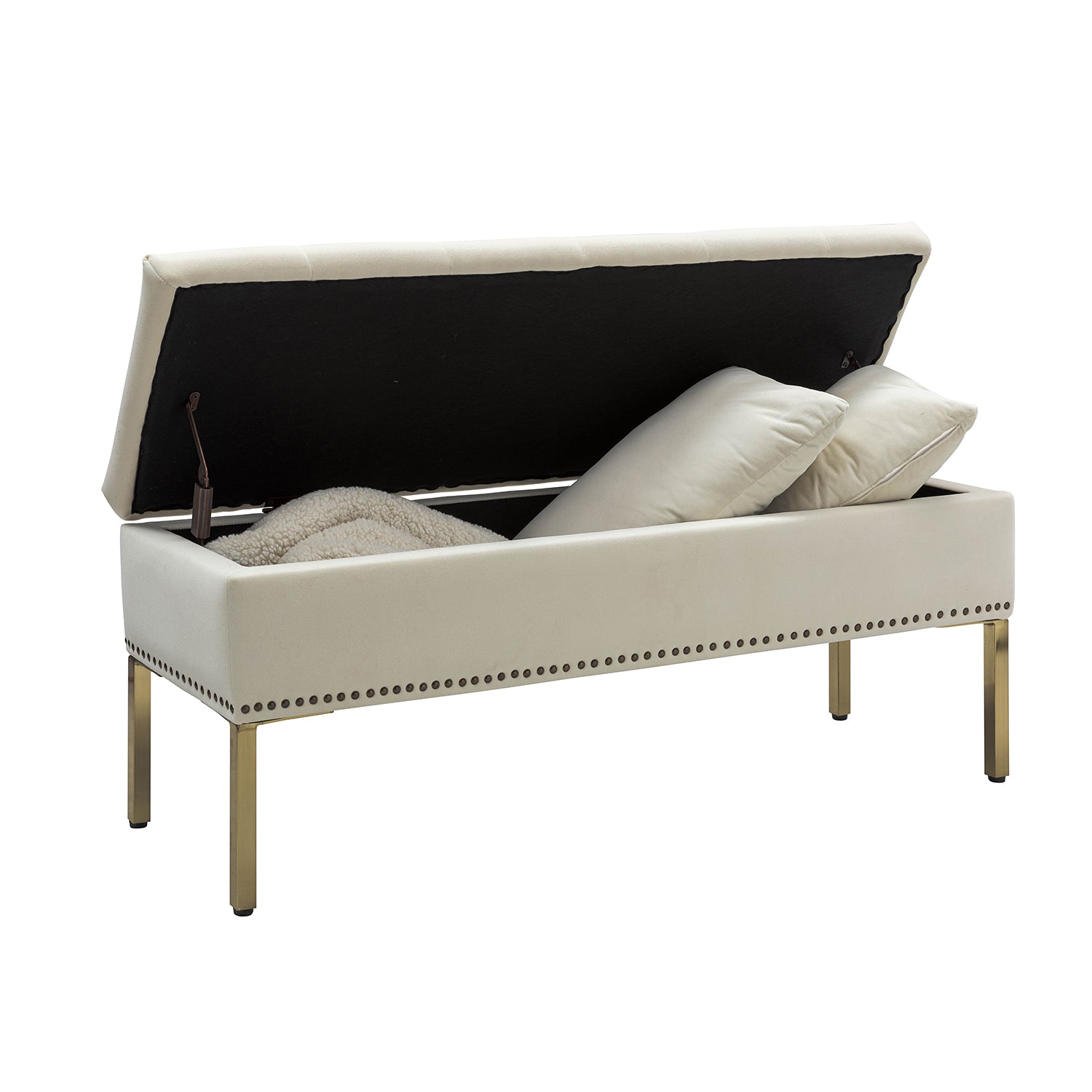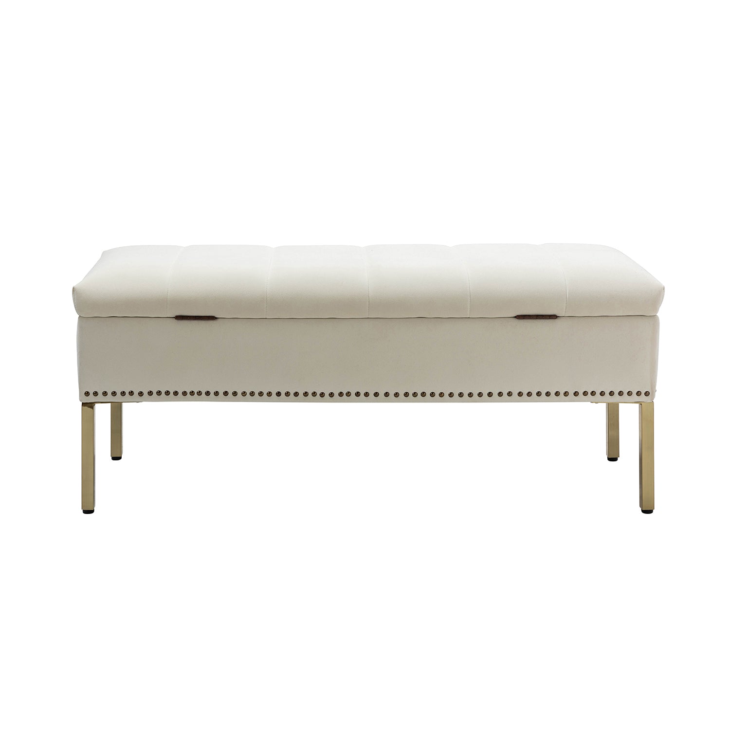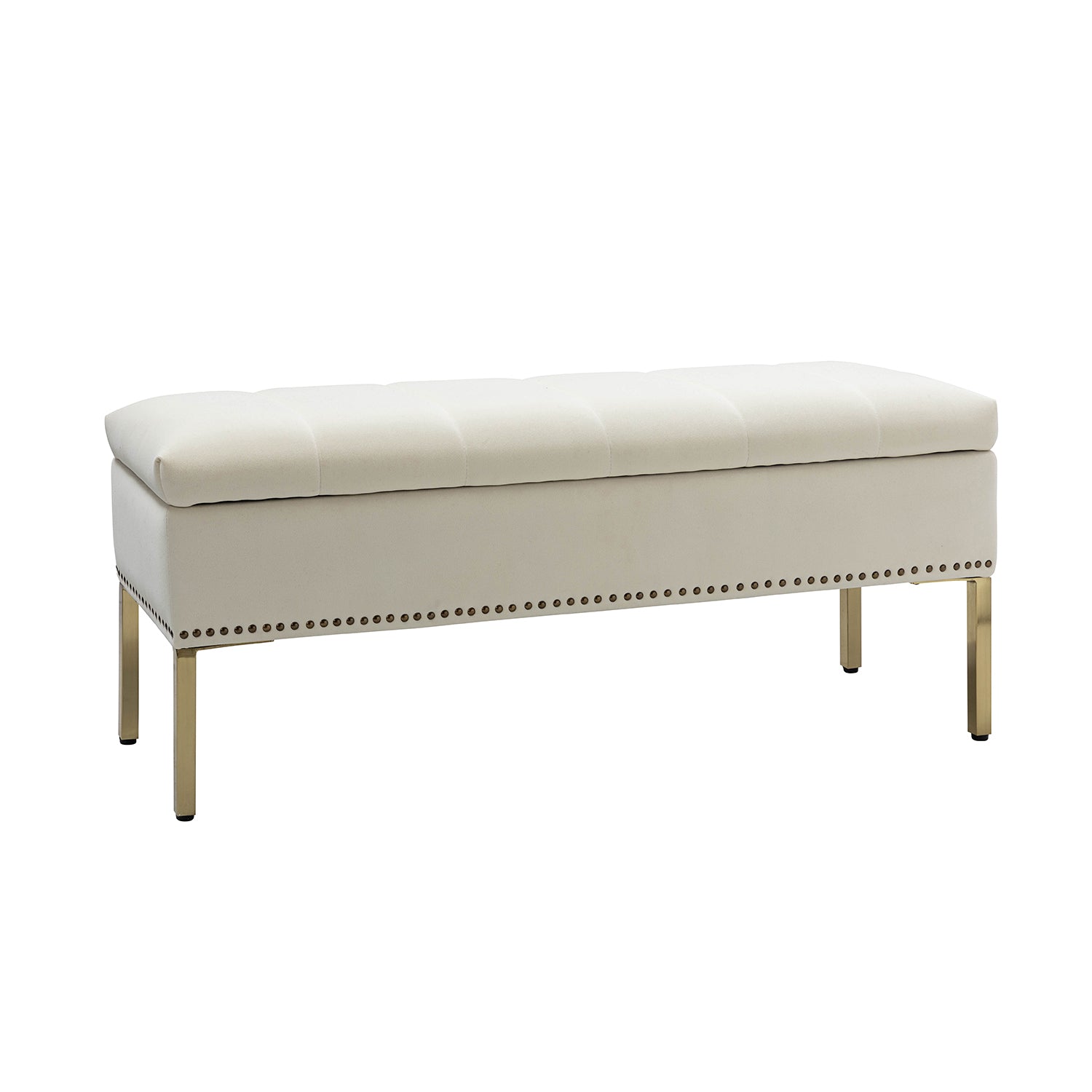 El banco de almacenamiento de terciopelo moderno combina a la perfección estilo y funcionalidad, convirtiéndose en un elemento imprescindible para cualquier hogar. Fabricado con una estructura resistente, tela de poliéster duradera y un acolchado de espuma suave, ofrece comodidad y longevidad excepcionales. El cojín del asiento con cinco canales capitoné y detalles de tachuelas añade un toque de sofisticación. Su diseño con tapa abatible revela un amplio compartimento de almacenamiento, ideal para organizar diversos objetos. Ya sea en la entrada, la sala de estar o el dormitorio, este banco versátil complementa los estilos tradicional, de transición, vintage y clásico. No solo proporciona asientos adicionales, sino que también sirve como una solución de almacenamiento funcional que mejora tanto el estilo como la comodidad.