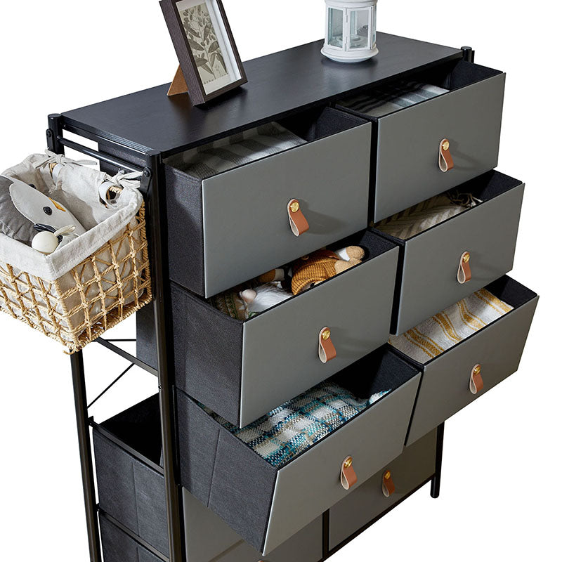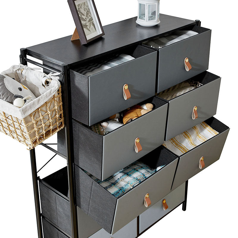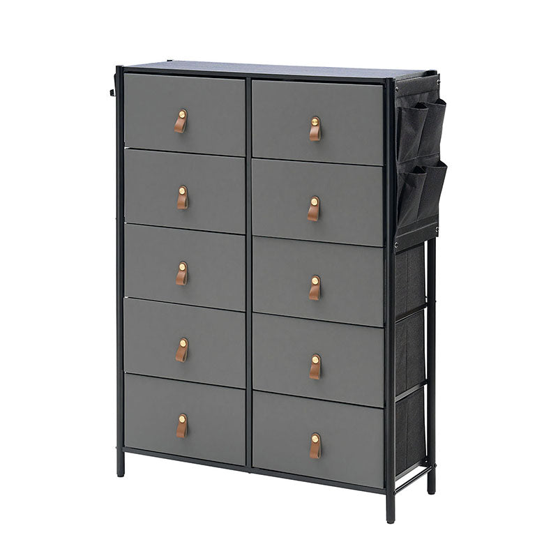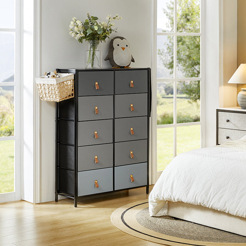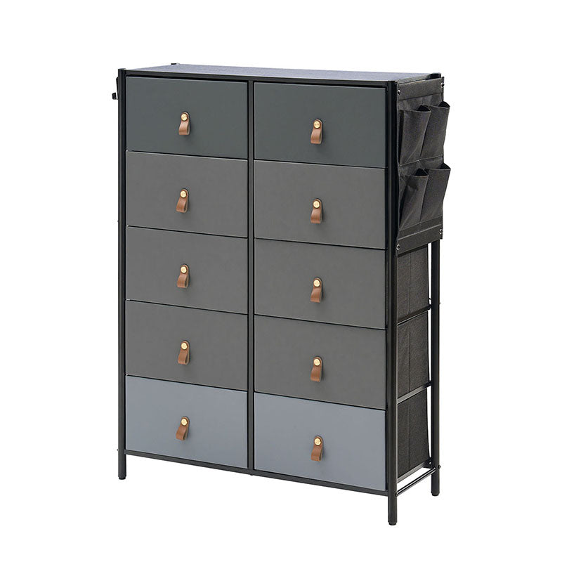 La cómoda de 10 cajones es una solución versátil y espaciosa para sus necesidades de almacenamiento. Con una gran capacidad, esta cómoda proporciona un amplio espacio para organizar sus pertenencias de manera eficiente. El dise?o de los cajones de tela elimina la necesidad de ruedas, garantizando un funcionamiento suave y sin complicaciones. Fabricada con una robusta y duradera estructura de acero, esta cómoda está hecha para durar y soportar el uso diario. El sencillo proceso de montaje le permite montarla rápidamente y sin esfuerzo, convirtiéndola en un cómodo complemento para cualquier habitación. Su diseño elegante y moderno lo hace adecuado para múltiples escenarios, ya sea que necesite almacenamiento adicional en su dormitorio, sala de estar u oficina en casa. La combinación de colores complementa varios estilos de interior, mejorando la organización de su hogar con esta cómoda de almacenamiento de 10 cajones y disfrutando de un entorno libre de desorden con facilidad.