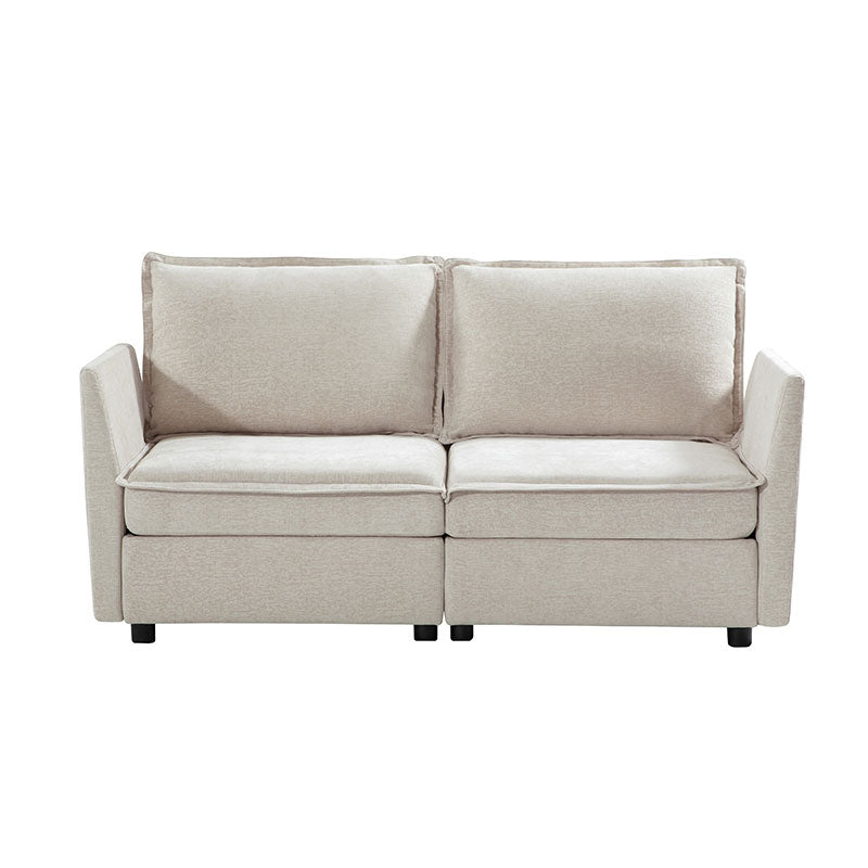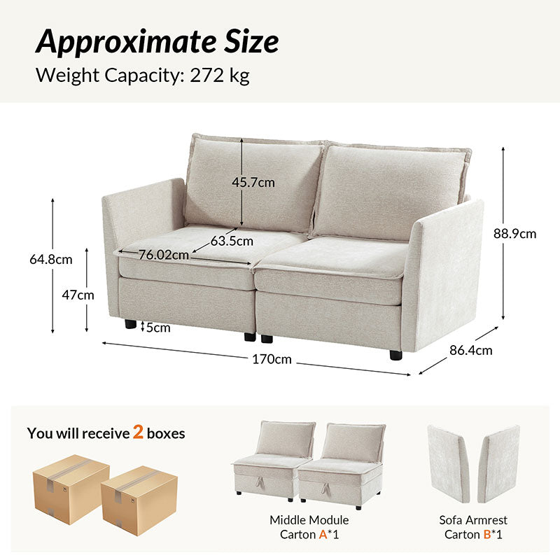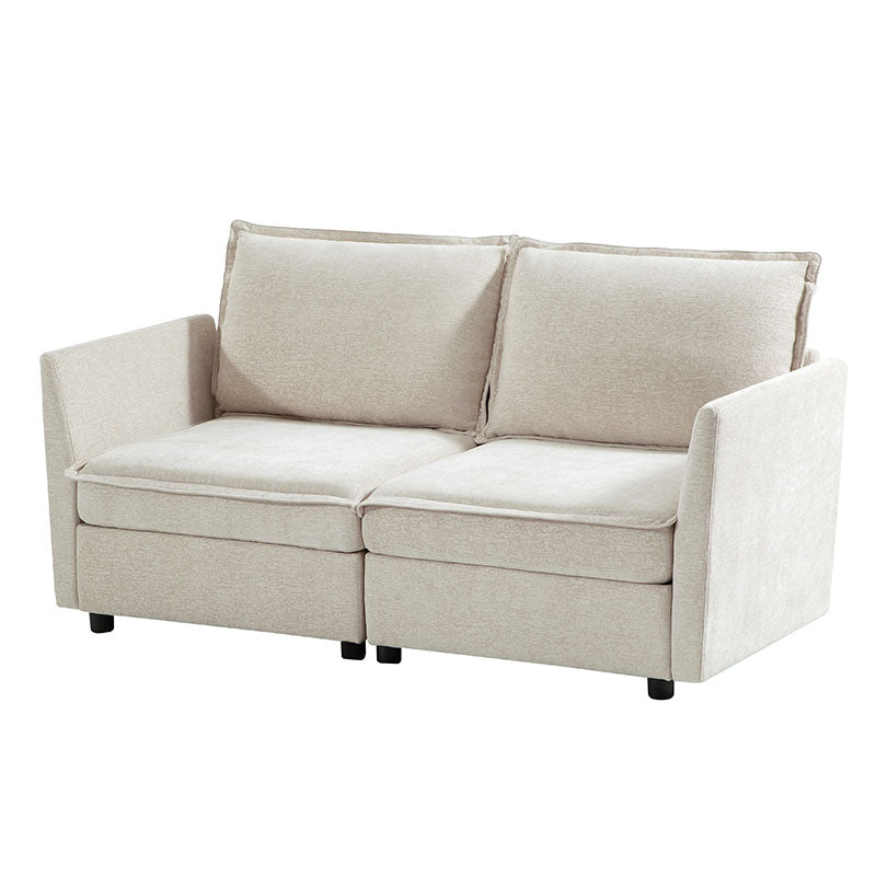 - Producto incluido: Sofá modular de 2 plazas, requiere montaje. - Asiento 1.5x Extra ancho: El gran sofá seccional cuenta con asientos que son 1.5 veces más anchos que el estándar, proporcionando un amplio espacio y comodidad, diseñado específicamente para las personas más grandes y amplias zonas de estar. - Cojín suave: El cojín está hecho de materiales suaves de calidad que ofrecen una comodidad superior, haciendo que el sofá seccional de gran tamaño sea adecuado para largos períodos de estar sentado o descansando. - Compartimentos ocultos: Ubicados debajo de los asientos, estos espacios de almacenamiento ocultos son ideales para reducir el desorden en la sala de estar, ya que proporcionan un lugar para guardar artículos de uso diario como mantas, almohadas y revistas, asegurando que sean fácilmente accesibles. - Diseño modular: Cada sección del sofá modular de gran tamaño se puede reorganizar para adaptarse a diferentes distribuciones de la habitación y preferencias personales, lo que le permite crear una disposición de asientos personalizada que se adapte a su espacio vital. - Fácil montaje: El gran sofá en forma de L está diseñado para un fácil montaje, sin necesidad de herramientas, lo que hace que montarlo sea sencillo y rápido.