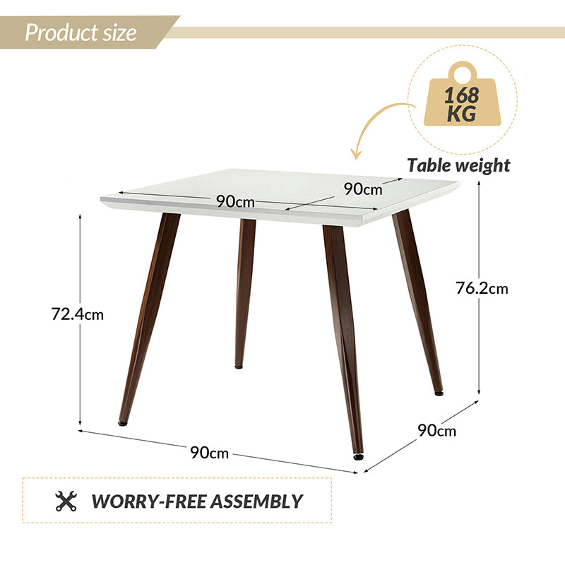 ¿Buscas añadir una mesa de comedor a tu comedor o cocina? Esta es justo lo que has estado buscando, con tus sensibilidades glamurosas, añadiendo un toque llamativo a tu espacio. Con sus patas de metal inclinadas y su apariencia de líneas limpias, esta mesa de comedor de madera es una adición elegante a tu colección de muebles. Añade esta pieza al comedor para complementar un arreglo contemporáneo o úsala para completar un acogedor aspecto de cabaña. Fabricada en MDF, presume de una forma geométrica bañada en un acabado neutro, mezclándose sin esfuerzo con tu esquema de colores. Esta elegante mesa de comedor completará el aspecto de tu comedor. Tiene capacidad para cuatro personas, por lo que puedes organizar una cena para amigos o cocinar una comida para la familia utilizando esta mesa confiable y resistente.