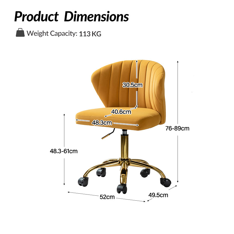 Esta silla de oficina de terciopelo es una verdadera joya. Desde el momento en que me senté, supe que había hecho la elección correcta. El material de terciopelo de felpa es increíblemente suave y liso contra mi piel, y el acolchado es perfecto, ni demasiado firme ni demasiado blando.
