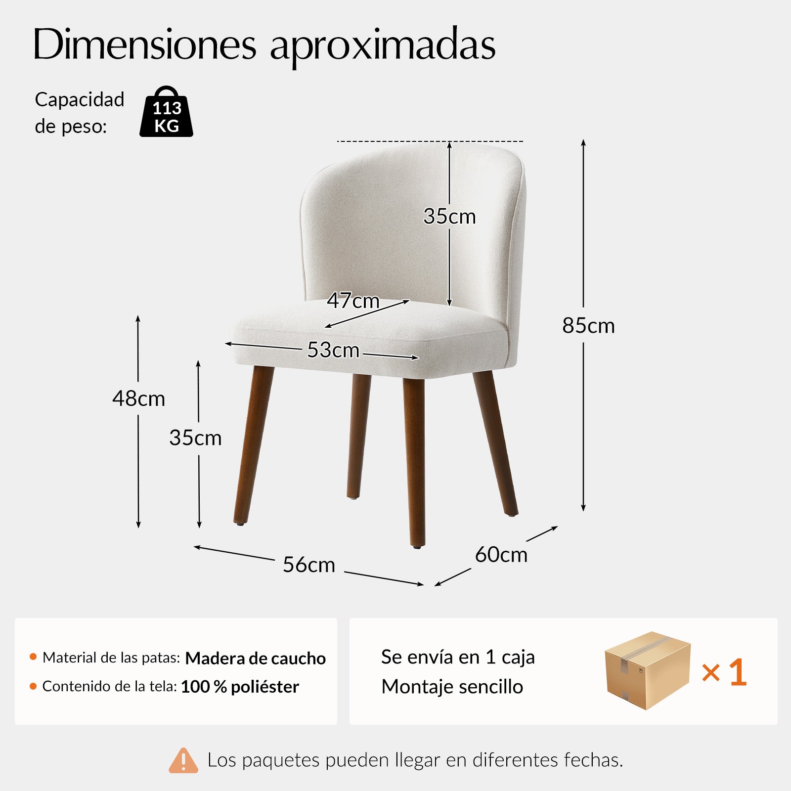 Con un respaldo suavemente curvado, cada silla de comedor de estilo mid-century está diseñada para seguir las formas naturales del cuerpo, proporcionando soporte ergonómico y un confort relajante para comidas, reuniones o largas conversaciones.La silueta redondeada del respaldo añade un toque sofisticado y acogedor a tu comedor o cocina.Debajo del asiento, las patas de madera maciza ofrecen soporte resistente, mientras su acabado natural complementa el diseño retro.Los asientos acolchados con espuma garantizan una sensación de confort mullido, ideal tanto para un desayuno rápido como para una cena con amigos.Este set de sillas combina perfectamente diseño y funcionalidad, ideal para interiores modernos o inspirados en el estilo mid-century.