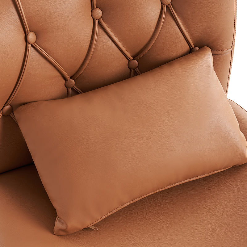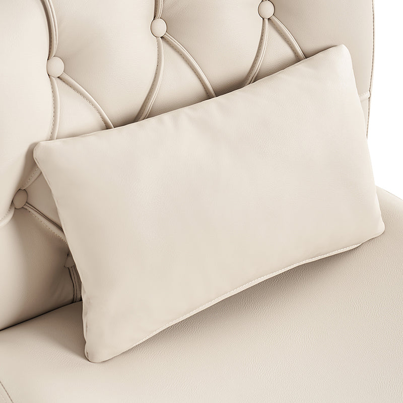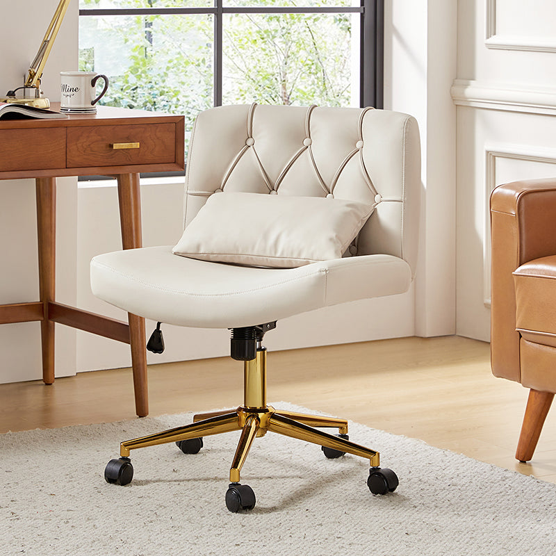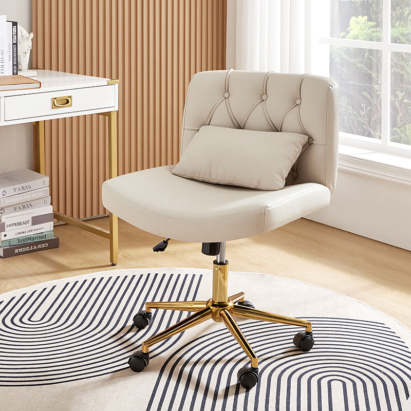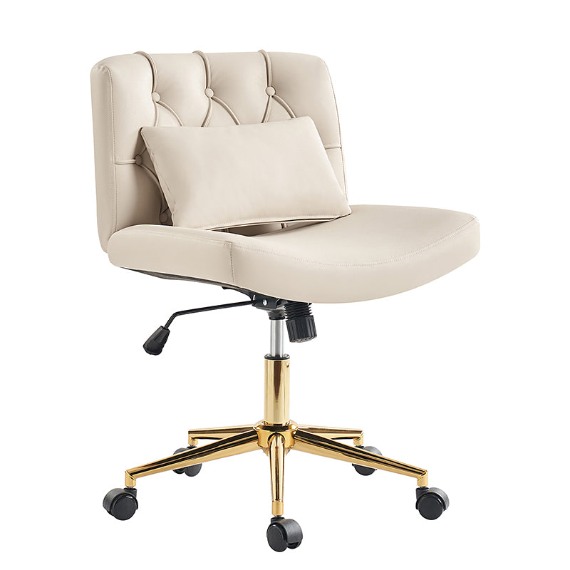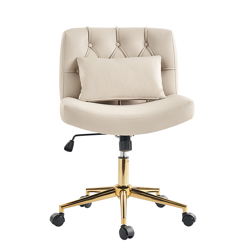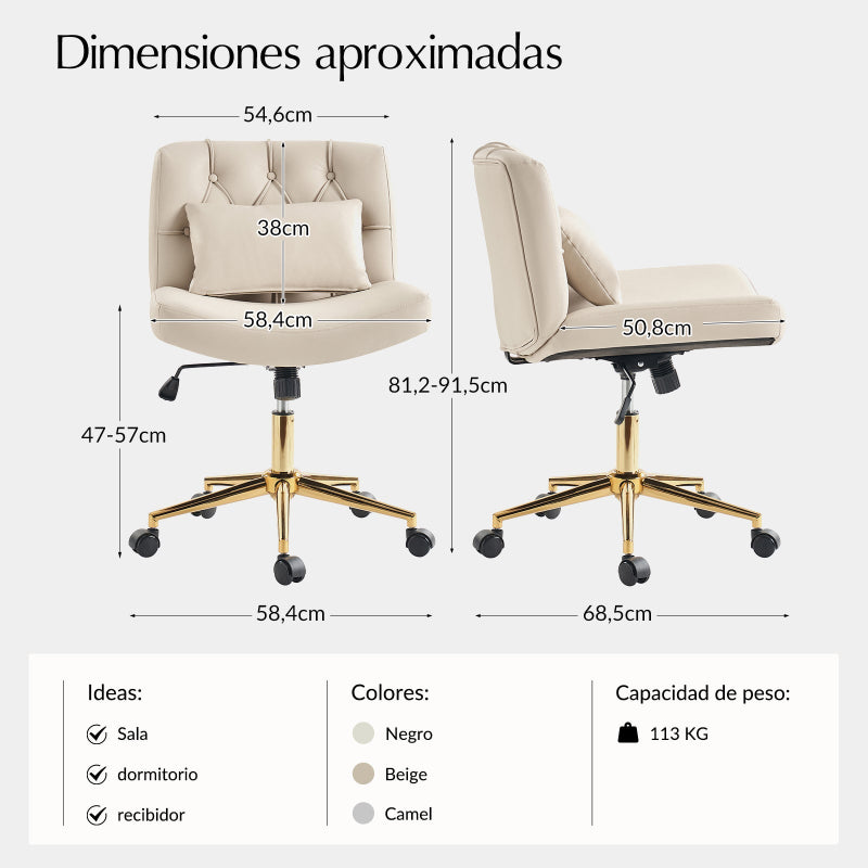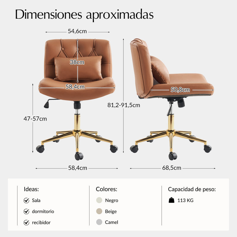 Presentamos esta silla de oficina contemporánea, adecuada tanto para el hogar como para la oficina. Fabricada con materiales duraderos, cuenta con un tejido resistente a los arañazos y fácil de limpiar que supera las pruebas de sustancias peligrosas SVHC174. Diseñada para ofrecer movilidad y estabilidad, sus patas metálicas incorporan ruedas de suave rodadura que garantizan un desplazamiento sin esfuerzo por distintas superficies. La silla cuenta con un asiento giratorio para mayor comodidad, lo que le permite llegar a diferentes áreas de su espacio de trabajo con facilidad. Disfrute de un confort personalizado con su altura ajustable y su función de inclinación, que le proporcionarán apoyo durante toda su jornada laboral. Esta silla también puede mecerse suavemente para un descanso relajante. Equipada con una almohada y un elegante respaldo acolchado con botones, ofrece comodidad y sofisticación. Además, su resorte de gas de acero inoxidable con certificación internacional SGS garantiza su durabilidad y seguridad. Actualice su oficina con esta silla de trabajo elegante y funcional, diseñada para mejorar su productividad y comodidad a la vez que complementa la decoración moderna.